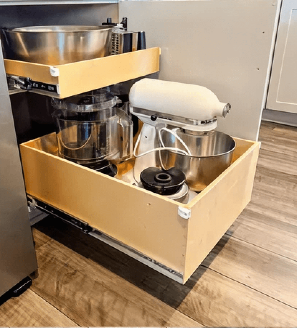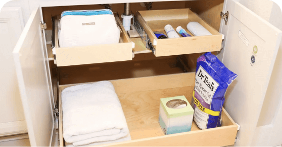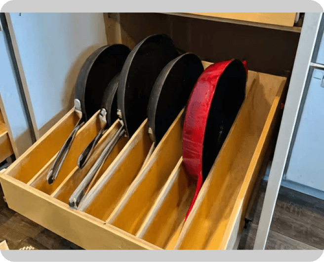 Custom measured to fit your cabinets – no more wasted space, bending down or DIY projects